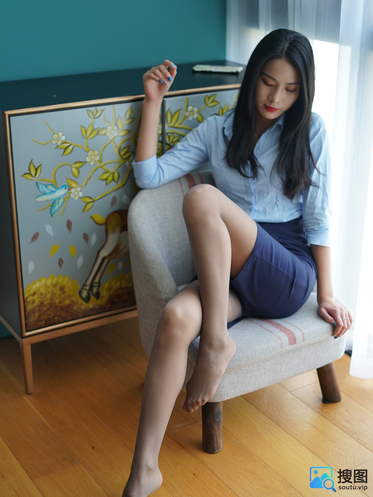 壹吻映画 YW009《梦梦-蓝色职业装 》[130+1P+1V/1.04G]